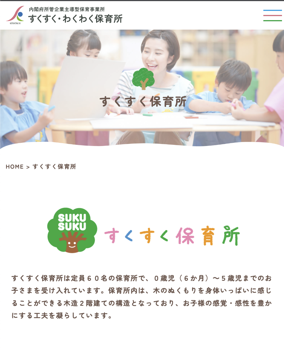保育所のコンセプトである木のぬくもりをテーマに、木のキャラクターが優しく微笑む様子をアイコンとし子どもたちの成長を見守るようなイメージで制作を始めました。カラフルな手書き風の文字を使い、字の1部を葉っぱにアレンジしたりして親しみやすい印象を目指しました。